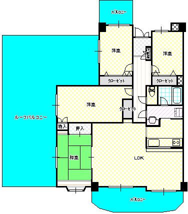 3面バルコニー 収納多数 タンス置場 独立洗面台