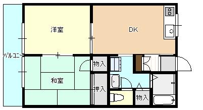 駐車場 1台込み0円/月 間取り(広さ) 2DK